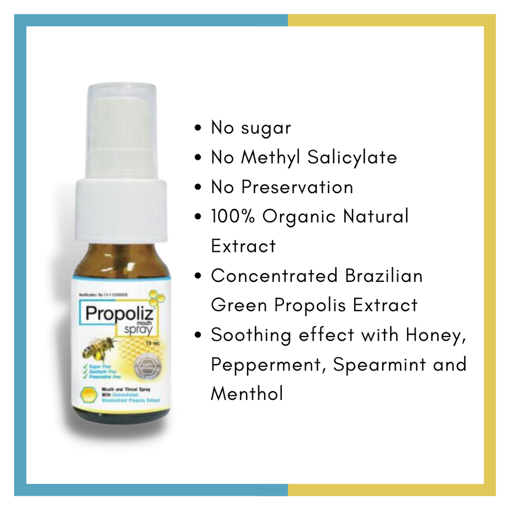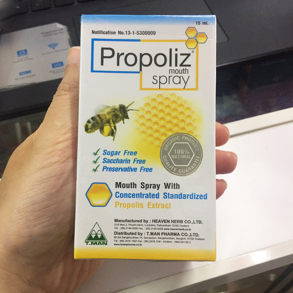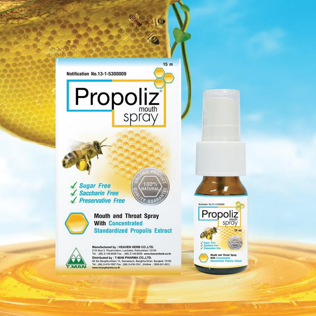- Propoliz Mouth Spray is an aerosol based on Thai recipes that uses only natural ingredients. Refers to the local dosage form, as it affects only the diseased area.
