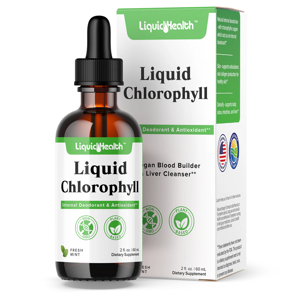 Experience a refreshing way to support your body’s detox, skin, and odor control functions with Liquid Health™ Liquid Chlorophyll. This highly bioavailable chlorophyllin copper complex works from the inside out—neutralizing free radicals, supporting healthy skin, and functioning as a natural internal deodorizer.