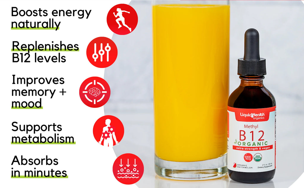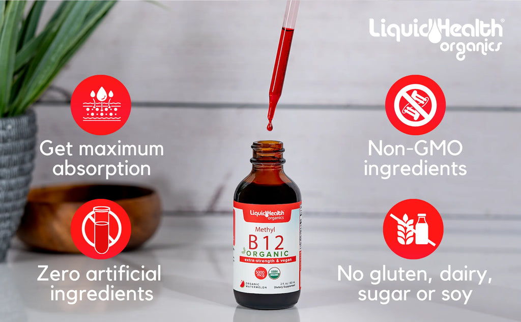 Liquid Health - Organic Methyl Vitamin B12 Liquid Drops - Extra Strength & Vegan 5,000mcg (2oz)
